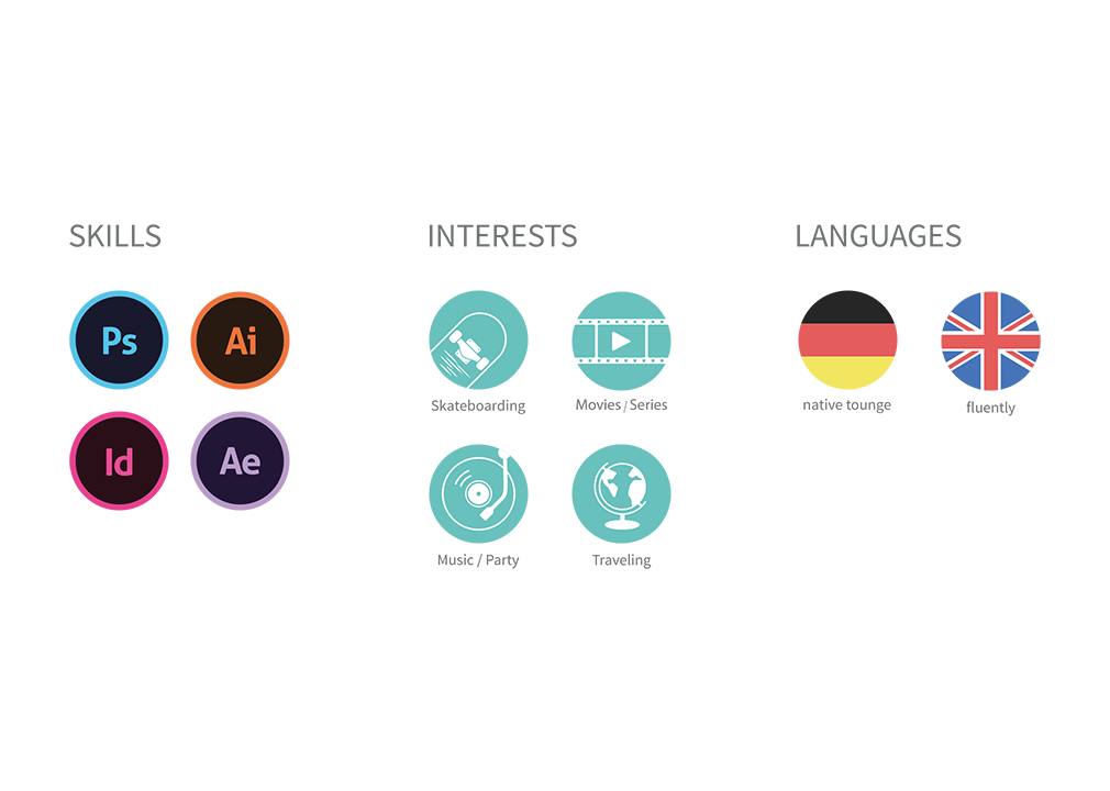 My strengths lie in the graphic area and in dealing with the Adobe Creative Suite, especially Photoshop and Illustrator. I also master After Effects and InDesign and have good basic knowledge of HTML and CSS. I'm specky and I know it. -
